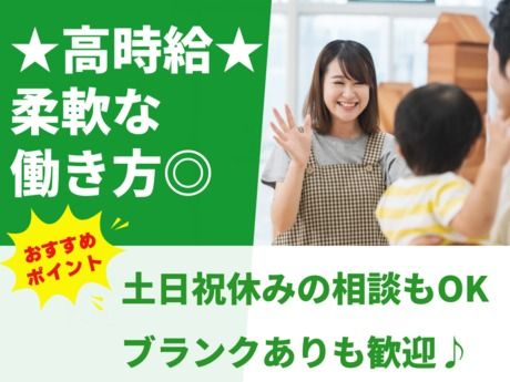 <★保育士資格必須!>高時給1,350円!土日祝休みもOK!週3日勤務から可能♪