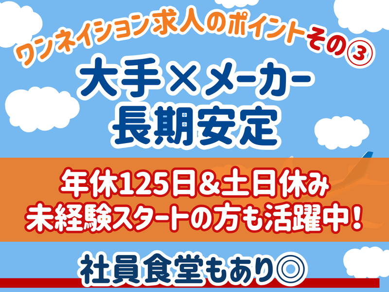 仕事内容 >>> 急募!製品運搬スタッフ <<< ✨お電話でのお問い合わせも大歓迎✨ \TEL: 052-933-3399 (採用担当)/ ▶出張面接・WEB面接も実施! +―――――――――――――――――+ 【無期雇用派遣のお仕事です。】 仕事が終わっても雇用は継続。 派遣でも安定が手に入る時代! +―――――――――――――――――+ 想像以上に働きやすい。 そう話す社員が多い職場環境です。 ✨長期で安定して働ける環境! ✨昇給・賞与もしっかり支給! ✨適度な運動で健康維持にも◎ ……………………………………… 仕事内容 ……………………………………… ✅工作機械製品の運搬 ハンドリフトを使用して 完成した製品を次の作業場へと 運搬します。 次の工程へとスムーズに進めるために 必要なやりがいバッチリのお仕事です! はじめは先輩スタッフから次に行うことの、 指示をしっかりもらえます。 何をしていいか迷うことは少ないですよ! このときにお仕事が覚えられれば、 そのあとはとっても働きやすい◎ また、歩くことが多いポジションなので、 仕事しながら健康にも気を使いたい方にぴったり! ……………………………………… 勤務地(派遣先) ……………………………………… 住所:愛知県丹羽郡大口町竹田 「柏森駅」から徒歩13分 ★食堂あり! カフェのような空間で居心地◎ 300円程度でそばやラーメン、 日替わりランチ等が食べられます♪ ◤……………………………………… ⏩ ワンネイション求人のポイント ………………………………………◢ ✨ワンネイションの「常用雇用」採用! 一般的な派遣とは違い、雇用が安定 プロジェクト終了でも雇用継続で安心 ✨月給制+賞与+昇給あり! 長期休暇でも給料が減らない安心感 評価基準が明確で昇給の道筋もクリア ✨年間休日は125日以上&土日休み案件多数! プライベートも時間も大切にできる しっかり休めてワークライフバランスも安定 ✨サポート体制充実! 月1回・15分程度の面談で悩みをしっかりフォロー 現場で言いづらいことも、当社担当者が間に入って調整 ――――――――――――――――― お電話でのお問い合わせも大歓迎! WEB面接も実施!現職中の方も お気軽にご応募ください! 日程調整いたします◎ TEL: 052-933-3399 (採用担当まで) ―――――――――――――――――