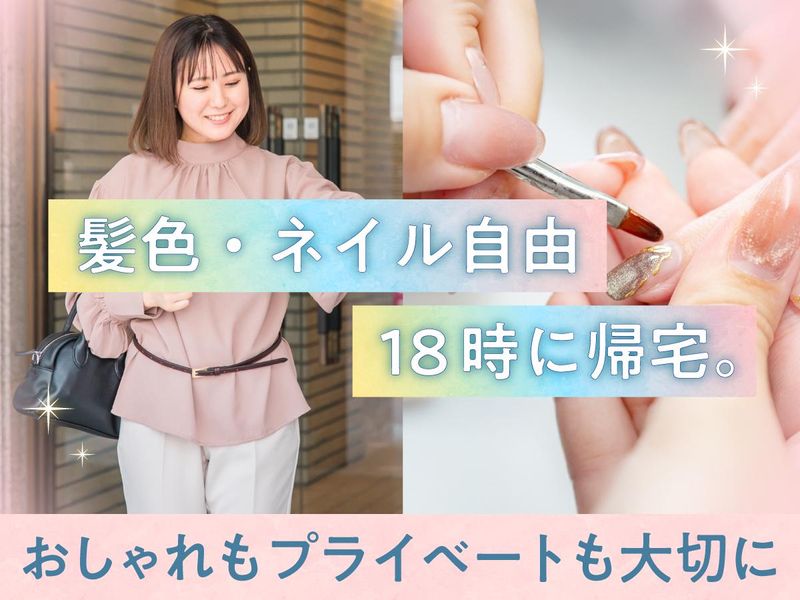 固定時間制 勤務時間詳細 8:50~18:00(実働8時間/休憩70分) ※残業なし ◎窓口の営業時間は9:00~17:00 ◎毎日17:00~18:00は自己学習やグループディスカッションの時間。だから定時で退社が可能です!