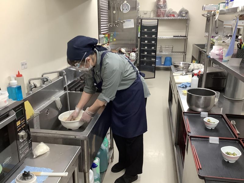 仕事内容 <具体的なお仕事> ・食事準備、片付け ・クックチル(出来上がった食材)を温める ・盛り付け、刻み、炊飯等簡単な作業のみ。専門的な知識は不要。みそ汁が作れるほどのスキルでOK。 ※一人でするお仕事です ・高齢者住宅内での、配茶、ゴミ集め、お部屋の掃除 (週1〜3回ほど) 主として、調理補助業務をしていただきますが、 職員重複の際には上記の作業となります。 <1日のスケジュール> 6:00 出勤、朝食準備 7:00 朝食配膳 8:00 朝食片付け 11:30 昼食準備 12:00 昼食配膳 15:00 片付け後退勤