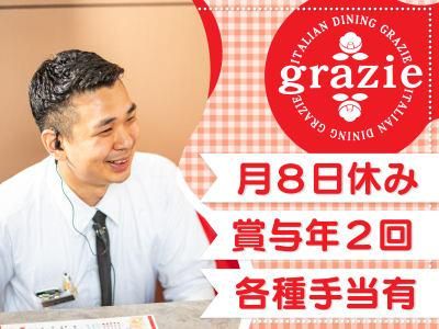 仕事内容 イタリアンを中心に多彩な料理をカジュアルに味わい、お酒を楽しめるダイニング「グラッツェ」のホールスタッフのお仕事です。 【具体的な仕事は】 オーダー取りや料理やお飲み物のご提供、お会計、テーブルセットなどの基本的なホール業務をお任せします。 まずは仕事の流れと当店の雰囲気を見ていただくため、お客様のご案内など簡単なお仕事から徐々にお任せしていきますので経験者の方もご安心ください。基本的な業務を覚えたら、シフト作成や売上管理などの店舗運営業務もお任せします。ゆくゆくは店長など、お店を率いる存在としての活躍を期待しています。 また、グラッツェでは誕生日や記念日などお祝いの日にご来店してくださるお客様も多く、そんなお客様のためにサプライズを全力でお手伝いさせていただいています。普段から「お客様に喜んでいただくには?」を考え、アナタの接客で素敵な空間作りを手掛けてください! 【「ありがとう」を大切にするお店です】 店名のgrazieはイタリア語で「ありがとう」という意味。設立以来、「夢とありがとう」を大切にしているお店です。 ご来店してくださったお客様と一緒に働く仲間に感謝の気持ちを持ち、共にグラッツェでの素敵な空間を楽しんでいただける方を歓迎します! 【キャリアアップのチャンスもあります!】 当社は社員ひとり一人が、「将来何をやりたいのか」を大切にしています。それを知るためにも定期的に行われるミーティングや年2回の面談で、上長と話し合える機会を設けています。普段の仕事の悩みなどはもちろん、キャリアアップなどについての相談も大歓迎です! また、会社として新規店舗の出店に注力しているため、新店の店長として活躍する道もあります。グラッツェ以外にもレモネード専門店や韓国商店など幅広くお店を展開をしているため、様々な経験を積むことも可能です。 また、実際にお店で働く現場の他に、幹部候補・本社勤務などポストも多数。入社後は経験や能力に応じた仕事やポジションをお任せし、その後は希望や適性に応じて店長やSVなど、満足のいくキャリアアップを目指すことができます! *今回の募集では『グラッツェJR55店』での勤務となりますが、店舗の状況により『グラッツェ北2条店(さっぽろ駅徒歩1分)』『グラッツェすすきの南3条店(すすきの駅徒歩3分)』での勤務となる場合もあります。 他にも昨年9月OPENの『ニューイタメシ酒場 grazie すすきの南5条店』11月OPENの『ニューイタメシ酒場 grazie すすきの南4条店』とオープニング案件も2店あり、今後も新店舗の出店を予定しています。