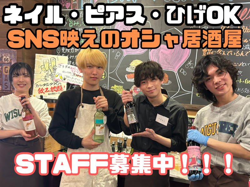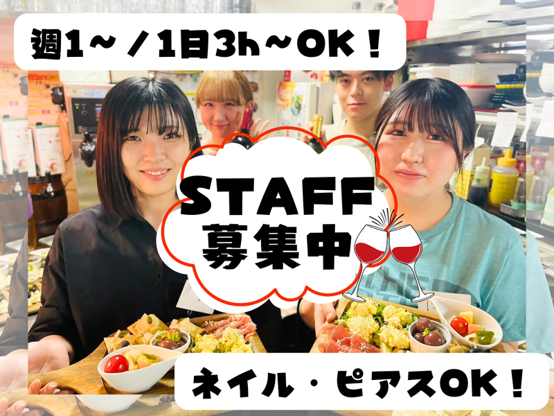 仕事内容 \✨人気の居酒屋スタッフ募集✨/ *▲▲ ( ・ω・)< 入社したらほぼ同期!? みんなで仲良くバイトデビューしよう! ✅髪色・髪型自由 ✅ピアス・ネイル・ひげOK♪ ✅日払い可能♪ ✅週1日~・1日3h~OK◎ ✅おいしいまかない無料! <具体的には> ・お客様のご案内 ・料理の配膳 ・レジ対応 ・簡単な調理 など \14時~17時は開店準備/ ・簡単な仕込み ・掃除 ・テーブルのセッティング など ※12時~オープンまでの勤務も可能 /)_/) (*・ω・) ―U―U―――――――――― 雰囲気抜群!楽しすぎるお店✨ ―v―――――――――――୨୧ ✅美味しいまかない無料! ✅安心の研修制度 未経験の方も安心スタートOK! 今までの経験は一切不問! 少しずつ一緒に成長しましょうね✨ ✅シフトは超自由! 週1日~、1日3時間~勤務OK! WワークもOKなので自由な 働き方を実現可能ですよ。