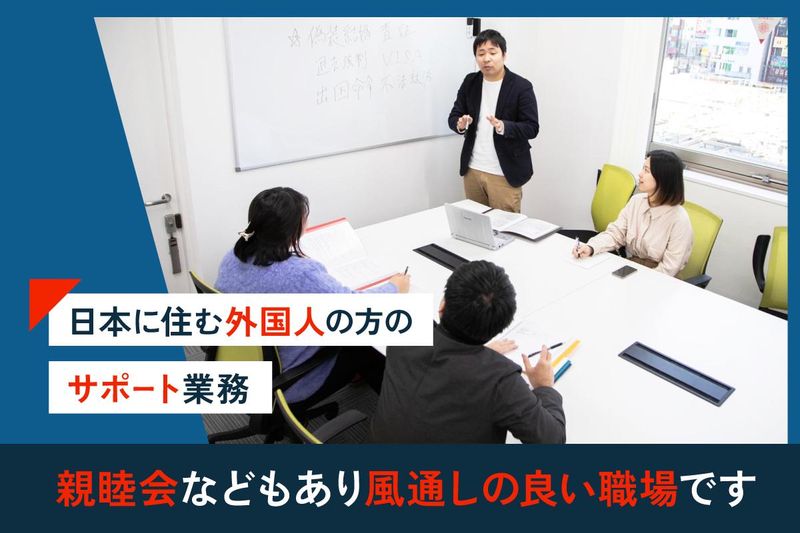 仕事内容 \自分のサポートで、 誰かの人生を支えるお仕事/ <主な業務> ・書類の収集や入力、スキャン ・申請書類の作成 ・お客様の対応(電話・来客) ・書類の郵送・提出手続きなど ※法律の知識や語学力は一切不要です。 ※マニュアルとダブルチェック体制ありのため、 はじめてでも安心してスタートできます! 内容は、在留資格やビザなど、外国人が 日本で生活を続けるために必要な手続きのサポートです。 ―――――――――――――――――― 外国人の在留資格、 VISA・帰化申請といった 国際法務を中心に手掛け、 日本に住むたくさんの 外国人をサポートしてきました。 WEBサイトの口コミでは 「対応が丁寧」 「安心して手続きを進められた」など 高い評価を頂いています!