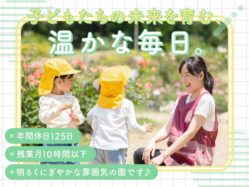 仕事内容 ⋱⋰ ⋱⋰ ⋱⋰ ⋱⋰ ⋱⋰ ⋱⋰ ⋱⋰ ⋱⋰ POINT ✅年間休日はたっぷり125日! ✅残業少なめ・月10時間以下 ✅賞与年2回(4ヶ月分)+特別手当(年1回) ✅年8回の新任研修あり(名古屋拠点またはオンライン) ⋱⋰ ⋱⋰ ⋱⋰ ⋱⋰ ⋱⋰ ⋱⋰ ⋱⋰ ⋱⋰ <お任せする仕事内容> 3~5歳児クラスの担任業務全般 (クラスにより複数担任制・慣れるまでは2名体制) ※クラス編成は毎年3月に実施: 時期により担任業務が発生しない場合あり ●保育・遊び・学習活動の指導 (歌やダンス・絵画工作・運動など) ※ピアノは簡単なものが弾ければOK! ●生活習慣の指導/社会性の育成 (挨拶・食事・着替えやトイレの補助) (お友達との関わり方・協力など) ●小学校への入学準備 (ひらがな・数字・簡単なルール) <その他> ●指導計画の作成や出欠管理・日誌作成 ●年間行事の企画・運営 ●保護者対応・連絡業務・保護者会の運営 ●園内会議・職員会議への参加 ●園内の環境整備・安全管理 など 週案の作成など、 一部自宅での作業が発生してしまうこともあります。 ですが、その分 「製作物や日誌の簡素化」を徹底。 ICT導入により、 園内での事務作業は極限までスマートにしています。