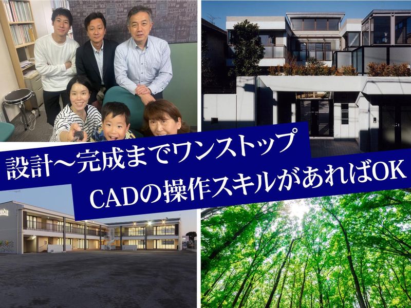 仕事内容 マンション、住宅、保育園、業務施設、 福祉施設などの建築設計業務全般をお任せします。 設計から完成まで ワンストップに携われる事が 当社の建築設計の魅力! 設計を手掛けた建築物が形になるまでを トータルプロデュースできる面白さが、 分業制では味わえない大きなやりがいです! 幅広い業務に携わり スキルアップを目指したい方に ピッタリの環境◎ _____________ ◤ 具体的には ◢ ‾‾‾‾‾‾‾‾‾‾‾‾‾ ■建築設計 ■図面作成(CAD・BIM) ■日影図作成 ■プレゼン資料の作成 ■パース・模型作成 ■施工監理/現場管理 ■顧客のアフターフォロー ■現地調査および改善提案 などをお願いします。 ※社内及びクライアントの打合せ等日本語のコミュニケーションが必須です。 ______________________ ◤ しっかり成長できる環境 ◢ ‾‾‾‾‾‾‾‾‾‾‾‾‾‾‾‾‾‾‾‾‾‾ クライアントとの直取引により お客さまのニーズを しっかり把握したうえで 設計をスタートできるのが 当社の設計職の大きなポイントです。 個人宅だけでなく福祉施設や 業務施設といった大型施設を 担当する機会も豊富にあるので 幅広い案件を通して設計士としての スキルアップが叶います! 今お持ちのスキルを活かして 建築設計としてワンランク成長したい という方にピッタリの環境です◎ お客さまも個人から企業まで多岐にわたりますので 「多様な案件を手掛けたい」 「設計だけでなく、建設現場にも携わりたい」 このような方は大歓迎! 多くの現場を通して、お客さまの想いを形にするプロフェッショナルを 一緒に目指しませんか? ___________________________ ◤ 業界大手から独立した成長企業 ◢ ‾‾‾‾‾‾‾‾‾‾‾‾‾‾‾‾‾‾‾‾‾‾‾‾‾‾‾ 私たちADDプランニングは 業界大手の設計事務所である 『梓設計』の子会社として1985年に設立。 今年で「創立40周年」の節目を迎えました。 2004年に独立後は その豊富な実績とノウハウを基に お客さまに寄り添った建築サービスを提供し “心からの満足”を生み出し リピートやご紹介を中心に成長を続けています。 梓設計独立後も、梓設計協力体制を継続しており、 大型物件等にも携わる機会があります。 そんな当社では現在、今後のさらなる成長に向けた組織強化の真っ最中。 今回は事業成長の要となる『建築設計』のメンバーを新たに募集いたします! ___________________ ◤ 成長サポートも万全 ◢ ‾‾‾‾‾‾‾‾‾‾‾‾‾‾‾‾‾‾‾ ✅資格取得支援あり 働きながら資格取得のための 学校等に通う際の時間調整にも対応! 当社は少数精鋭の組織だからこそ、 「社員一人ひとりの働きやすさ」と 「スキルアップ」にも注力しています。 _____________________ ◤ 私生活と両立できます ◢ ‾‾‾‾‾‾‾‾‾‾‾‾‾‾‾‾‾‾‾‾‾ ✅完全週休2日制(土日祝休み) 『自分の時間』を大切にできます! プライベートとお仕事の両立を応援し 公私ともに充実させられる環境を 整えております。 産休・育休からの復帰実績あり! 一人一人が活躍ができ、 働きやすい職場です!