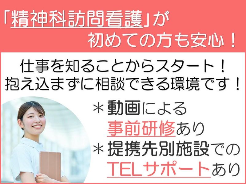仕事内容 * "精神特化型"の訪問看護ステーション * 「バタバタとした病院勤務で、 患者さん一人ひとりに向き合えず モヤモヤしていた」…そんな看護師さんへ。 患者さま一人ひとりとじっくり向き合える  ̄ ̄ ̄ ̄ ̄ ̄ ̄ ̄ ̄ ̄ ̄ ̄ ̄ ̄ ̄ ̄ ̄ ̄ ̄ ̄ 《ほぼ残業なし》9~20時の間で実働8時間 《ブランクOK》久々の仕事復帰も応援! 《お休み充実》日祝休み&長期休暇あり 《研修あり》訪問看護デビューにもオススメ +。・*+。・*+。・*+。・*+。・* 【仕事内容】 利用者宅を訪問し、訪問看護計画書に 基づいたケアサービスを行います。 ※1日5~7件を訪問予定 ※現場への直行直帰もOK! 【具体的には】 *バイタルチェックや精神状態の観察 *日常生活の支援や服薬管理、 家族への支援を含む看護 *訪問看護計画書・報告書の作成 *利用者様に関わる関係機関との情報共有 など 《 利用者様について 》 20〜40代の方がメイン。 軽度〜中等度の精神疾患をお持ちの方が多く 急性期のような医療処置はありません。 《 研修あり 》 訪問看護未経験の方を対象として動画研修と 先輩との同行研修を行っています。 +。・*+。・*+。・*+。・*+。・* < ここがポイント! > [1] 『精神特化型』の訪問ステーション!  ̄ ̄ ̄ ̄ ̄ ̄ ̄ ̄ ̄ ̄ ̄ ̄ ̄ ̄ ̄ ̄ ̄ ̄ ̄ うつ・統合失調症・不安障害など、 心のケアを必要とする利用者様のサポートが 中心です。医療技術よりも「話を聴く力」、 「寄り添う気持ち」が活かせるお仕事です。 ※医療行為は比較的少なめで、 体力的な負担も軽めです。 [2] 看護業務に専念できる環境です!  ̄ ̄ ̄ ̄ ̄ ̄ ̄ ̄ ̄ ̄ ̄ ̄ ̄ ̄ ̄ ̄ ̄ 〇請求業務は本部で実施。 事務・書類仕事の負担が少ない! 〇一人1台ずつ業務用スマホを支給。 記録には専用アプリを導入しているので 日々の記録もやりやすい! [3] 安心のサポート体制あり!  ̄ ̄ ̄ ̄ ̄ ̄ ̄ ̄ ̄ ̄ ̄ ̄ ̄ ̄ 別施設の先輩に相談できるシステムあり。 分からないことも質問できる環境なので、 訪問看護が初めての方もご安心ください! [4] 現場への直行直帰OK!  ̄ ̄ ̄ ̄ ̄ ̄ ̄ ̄ ̄ ̄ ̄ ̄ 職場の人間関係でストレスを感じたくない、 という方にオススメ! ++-----------------++ 《 少しでも興味を持っていただけたら… 》 「なぜ精神特化の訪問看護なのか?」 そんな代表の想いをぜひご覧ください! 【企業HP】 https://houmon-pasurel.com/ ++-----------------++ *パート・アルバイトからの スタートも相談OKです。