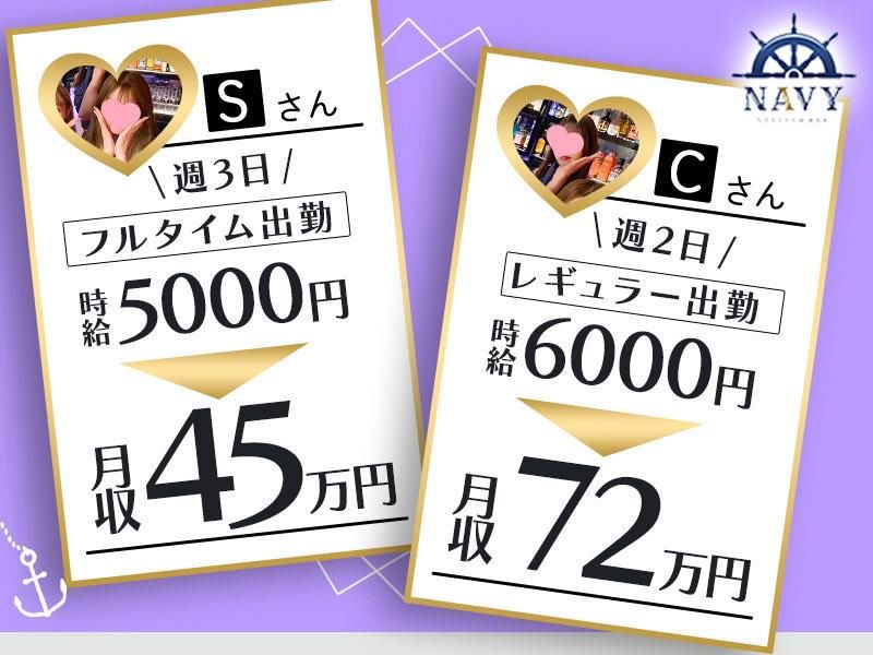 時給3,000円以上 給与詳細 基本給:時給 3000円 〜 面接は13時から対応可能! ・1万円まで日払いOK ・お昼11時から出勤もOK ・シングルマザーの方も活躍中 体験入店でもドリンクバックが付くので 頑張り次第で1万円以上稼ぐ方もいます! 時給+バックで稼げる! \”横浜NAVY”は毎日体入受付中/ →全額日払い →手ぶらでOK! →完全カウンター越しの接客で安心!! →体入時間3h~OK!!