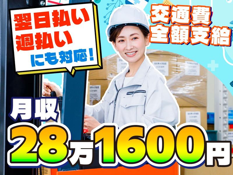 仕事内容 求人のポイント  ̄ ̄ ̄ ̄ ̄ ̄ ̄ ̄ ̄ ■オープニング ┗新規の現場につきNEWスタッフ大募集 ■フォークリフト ┗入・出庫メイン、手積み・手下ろしナシ ■翌日・週払い可 ┗給与は支払方法を選択OK、すぐゲット ■医療系の倉庫 ┗1年を通して快適な室温で作業できます 日々の健康を支える体温計や血圧計など。 そんな医療機器や医薬部外品を扱う倉庫で 新規案件の稼働に伴うスタッフを大募集! お仕事は…  ̄ ̄ ̄ ̄ ̄ ̄ ̄ ̄ ̄ リーチフォークリフトに乗務して体温計など 商品の入出荷・格納作業をおこないます。 キレイな常温倉庫内の現場で、新たな仲間と ともに勤務スタート! 【取り扱い商品】 ・体温計、血圧計などの医療機器 ・その他医薬部外品など 【具体的な作業内容】 ■入庫作業 ┗入荷した後、検品が完了した商品をフォークリフトで所定 の棚へ格納・補充していく作業です。広く衛生的な倉庫の ため、安定したフォークリフトの操作が可能です。 ■出庫作業 ┗指定された商品が格納されている棚からフォークリフトで 棚出しを行い、出荷エリアなど指示された場所へと運搬し ていく作業です。場合によって、エレベーターを使った 上下移動を伴う運搬を行うこともあります。 ※安全靴のご持参をお願いしております 勤務先は…  ̄ ̄ ̄ ̄ ̄ ̄ ̄ ̄ ̄ 創業100年にわたり、医療を支えてきた大手医療機器メーカーです。 人々の健康を支える医療部外品は安定した供給体制が求められるため、 安定して長期で働くことが可能です。 私たちについて  ̄ ̄ ̄ ̄ ̄ ̄ ̄ ̄ ̄ (株)アウトソーシングジャパンはOSJグループの中核企業として、食品という安定した業界の大手クライアントを中心に物流倉庫内の業務受託事業を展開しております。食品業界を中心とした顧客構成は、食品は生活に欠かすことのできない必要なモノとなるため、景気の波にそれほど影響を受けないと考えたためです。 実際に、コロナ禍においても大きな影響を受けることがなく、クライアントとともに安定した成長を続けることができました。このような環境で働けるのはスタッフの皆さんにとっても、魅力的なポイントになると思います。