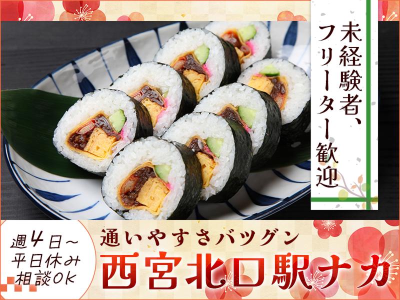 仕事内容: ★阪急西宮北口駅ナカのある店舗にて、 柿の葉すしをはじめとしたお寿司や お弁当などの販売業務をお任せします。 ※過度な染髪やネイルはご遠慮ください ✿主な業務内容✿ ・お客様への商品ご案内、接客 ・レジ業務 ・商品の包装 ・その他関連業務 ∽∽∽∽∽∽∽∽∽∽∽∽