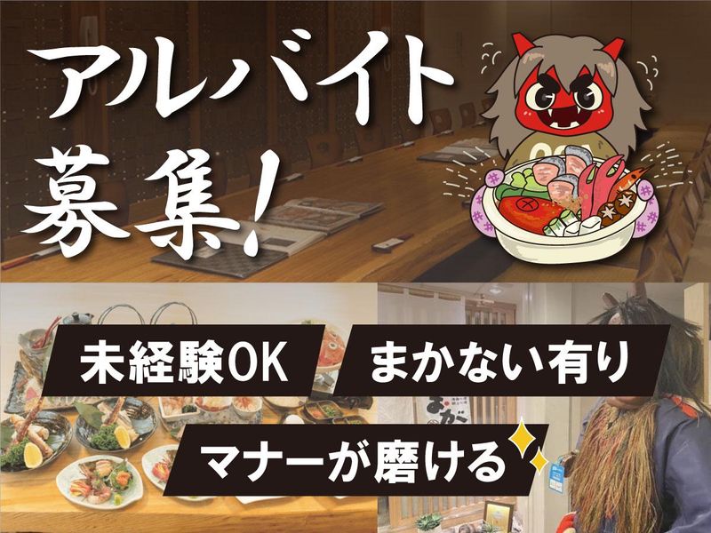 仕事内容 郷土料理おがでアルバイト募集! 学生さんが多く活躍しているので 孤立とは無縁な環境! おがではマナーや人間力が 磨かれる場となっております。 実際におがで教えている内容をご紹介! 「客席への入室・退出の時に言う言葉はどれでしょう♪」 A.失礼します。 B.失礼いたします。 正解は~?ジャガジャガジャン♪!! Bの「失礼いたします。」でした! Aも言葉としては間違いではありませんが より丁寧な言い方をしていただくので Bの「失礼いたします」という言葉を 使っていただきます! 正直、覚えていただく事は 多いかもしれませんが どこへ行っても役に立つスキルが 身に付くはずです。 あまり大きい声では言えませんが 有名な社長さんも昔バイトしてたとか!? なまはげはちょっぴり怖いけど お店の人たちはやさしい方ばかりなので 飲食経験が無くてもしっかり教えます! ぜひ!郷土料理おがへご応募ください! 【仕事内容】 ・配膳作業 ・お席の片付け ・メニュー拭き など あなたにお任せいたします。 ドリンク作りや電話予約の受付 などの業務は社員が行うので 笑顔で配膳できればまずはOK! 難しい作業は一切ございません! 学生時代は建築を学んでいた アルバイトの子が今では社員! 未経験からでも活躍できるような 研修がしっかりしているのも魅力! 留学生の方も活躍しておりますので 外国人の方も安心して働けますよ! <毎日のまかないが楽しみなんです!> 料理長自ら腕を揮う絶品のまかないが自慢! カレーやパスタ、本格的な和食、、稀に高級寿司も!?