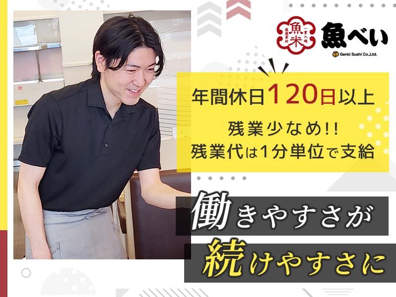 仕事内容 全席タッチパネル式の寿司店での店舗運営業務全般 ・寿司ネタを切るなどの調理 ・簡単な接客・会計・案内 ・売上や食材、設備の管理 ・衛生管理 ・スタッフ教育・シフト管理 など 【回転レーンを持たないオールオーダー型の「回転しない寿司」が全国に拡大中!】 ・お客様がタッチパネルで注文するスタイル ・注文ミスによる食材ロスの削減 ・厨房スタッフも注文内容を正確に把握できる あなたのペースで、 キャリアをつくろう!  ̄ ̄V ̄ ̄ ̄ ̄ ̄ ̄ ̄ 未経験の方でも安心して始められる職場です。 ◆シンプルな調理作業が中心 お寿司の調理はたったの5秒♪ マニュアル化・機械化を進めているので、業務もスムーズ! 包丁を握ったことがない方でも無理なく業務を習得できる♪ アルバイト経験のみでも、OJTや座学研修を通して基礎からしっかり学べる環境。 ◆オープンな職場 意見を言いやすく、フランクなコミュニケーションが魅力! 中途社員の約6割は20代・30代! ◆転居なし!地元で店長を目指せる 希望に応じたエリア・地元勤務の安心感があり、将来を見据えて長く働ける! ◆キャリアアップのチャンス 年功序列ナシ!実績をしっかり評価し、昇格・昇給を決定。 キャリアパスが明確なので、将来のキャリアプランを描きやすい! 働きやすく、 働きがいのある会社へ進化中!  ̄ ̄V ̄ ̄ ̄ ̄ ̄ ̄ ̄ ̄ ̄ ̄ ̄ ■ プライベートを削るイベントはほぼナシ! □ メリハリをつけて働ける環境! ■ 半日休暇制度導入で、休みが取りやすい! □ 平均勤続年数は11.6年!安定した職場! ■ 国内外に新店舗が続々オープン予定♪ □ 東証スタンダード上場企業!安心の経営基盤! 実際にお店を利用した内定者が多く、「お店の雰囲気の良さ」「スタッフの対応の良さ」に魅力を感じて応募しています。 コミュニケーションを楽しみながら、仲間と一緒にお店を盛り上げていきましょう! ★充実の研修カリキュラム  ̄ ̄ ̄ ̄ ̄ ̄ ̄ ̄ ̄ ̄ ̄ ̄ ̄ <入社~4日間> 研修施設で座学と OJT 会社のマニュアルや店舗での食品調理・接客などを学びます。 ↓ <配属~3ヶ月> 研修店舗で現場研修 あなたのペースに合わせて店舗マネジメント業務を実践形式で覚えていきます。 店長とチーフ、調理の専属トレーナーが直接指導してくれるので安心です! 包丁の握り方から学べるので料理をしたことがない方でもしっかり学べます。 ★働くスタッフの声  ̄ ̄ ̄ ̄ ̄ ̄ ̄ ̄ ̄ ●20代男性 Aさん 初めての正社員で不安もありましたが、基礎から学び、半年後にはチーフに昇格!安定した収入を得ながら、一人暮らしに向けて貯金中。仕事もプライベートも充実させていきたいです。 ●20代女性 Bさん 和やかなお店の雰囲気に惹かれて応募しました。研修制度がしっかりしているので未経験でも安心!飲食店は大変と聞いていましたが、休みも取りやすく、趣味の時間も確保できて嬉しいです! ●30代男性 Cさん 転職では「家族との時間」を優先。上場企業の安定感と通いやすさが決め手でした。仕事と家庭のバランスを大切にしながら働けています。 求める人材 チームワークを大切にし、柔軟な対応力を持つ方、変化に適応し課題解決に取り組める方を歓迎します。  ̄ ̄ ̄ ̄ ̄ ̄ ̄ ̄ ̄ ̄ ̄ ̄ ̄ ̄ ̄ こんな想いを持つ方にピッタリ! ■ 成長企業で働きたい □ キャリアアップを目指したい ■ 飲食業界やマネジメントに関心がある □ 人と接することが好き ■ グローバルな環境で挑戦したい □ お寿司が大好き! 経験よりもポテンシャルを重視し、充実の研修制度とキャリアアップの機会を提供します。