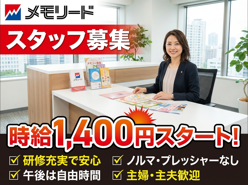仕事内容 ⭐研修3ヶ月は【時給1,400円】✨ ⏩ノルマなし/⏩週3日~OK ⏩午前中だけで家庭と両立 ―――――――――――――――― >「午後は家のことを優先したい」 >「短時間でムリなく働きたい」 そんな方に選ばれているお仕事です。 【仕事内容】✨シンプル&安心 \未経験スタートがほとんど⭐/ ✅ チラシ・DMの仕分け ✅ ポストへのチラシ配布 ✅ イベント・式場のご案内 ✅ 翌日の準備(軽作業) ―――――――――――― ⭐難しい説明・営業トークなし ⭐覚えることは少なめ ⭐自分のペースでOK ―――――――――――― 【この仕事が続けやすい理由】⭐ ✅ 10:00~13:00の固定時間制 ✅ 扶養内・WワークOK ✅ 土日祝休み ✅ ほぼ残業なし ✅ 冷暖房完備で快適✨ ⏩ 子育て中・ブランク明けの方も安心 ⏩ 20代~60代まで幅広く活躍中