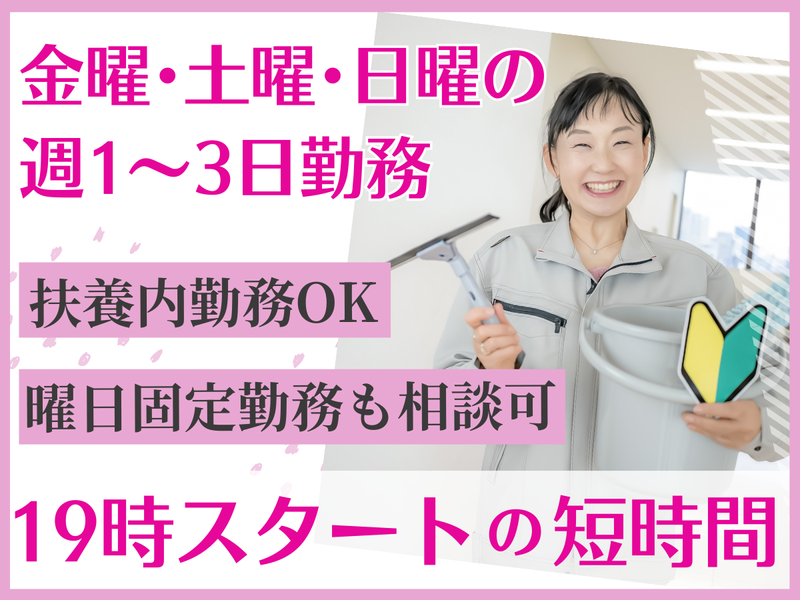 仕事内容 \\ ✨おすすめポイント✨ // ✅週1日~3日勤務OKで私生活優先♪ ✅経験不問!難しい作業ナシで未経験も◎ ✅扶養内勤務OKでミドル・シニアも活躍! ✅金土日&夜19時からで副業に最適! ┗15時スタートも相談に応じます◎ ――――――――――――――――――― 【空調完備の商業施設での清掃業務】 ・フロアのモップ掛け・掃き掃除 ・階段手すりなど共用部の拭き掃除 ・男女化粧室の清掃 ・ゴミ回収作業 など ⭐清掃スキル・経験不要!!⭐ 難しい作業や機械操作はありません! 普段の清掃スキルがあれば充分ですし 普段あんまり清掃しないよという方もOK! コツが学べて一石二鳥! 体を適度に動かしながら働けるので、 運動不足を解消したい方は一石三鳥! 入社後は先輩がサポートしますので、 まずはお気軽にご応募ください♪