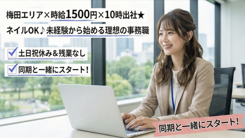 梅田エリア×時給1500円×10時出社★ネイルOK♪未経験可