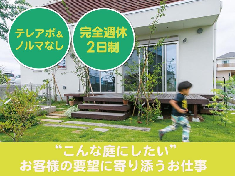 仕事内容 ━━━━━━━━━━━━━━━━━━━ \ テレアポ・飛び込み・新規集客ナシ / ✦… 未経験スタートの先輩が多数 …✦ ━━━━━━━━━━━━━━━━━━━ 経験よりも大切なのは… 「人の話をしっかり聞けること」!! お客様の「なぜ?」を一緒に考え、 理想の住まいをカタチにするお仕事です。 ◤ 未経験でも月給37.9万円スタート ◢ 元・飲食や販売、工場勤務など、 異業種からの転職者が多数活躍しています! 入社後は、基本から丁寧に 教える研修があるので安心スタート✨ ―――――――――――――― …⭐ オススメPOINT ⭐… ―――――――――――――― ■前職給与を保証&スピード昇給あり! ■年休126日以上×完全週休2日制♪ ■土日祝の休暇取得も事前相談でOK! ■転勤ナシ!地域密着型で長く働く ■社内の部活動も活発(強制参加ナシ) ・―・・―・・―・・―・・―・・―・・―・・―・・―・・―・ 【 仕事内容 】 外構・ガーデン専門の完全反響営業です。 お問い合わせいただいたお客様のお庭の ご相談に対し、最適なプラン提案をします。 <具体的には…> ✅お客様のご要望ヒアリング ✅現場調査、プラン提案 ✅見積作成、ご契約 ✅工事の手配・施工管理 など < 1日の業務の流れ(例)> ――――――――――――― 8:15|出社・朝礼/スケジュール確認 9:00|現場の進捗確認 10:30|プラン作成 12:00|昼休憩 13:00|商談/プラント見積提出 15:00|別現場の進捗などの確認 16:30|プラン作成 17:00|事務処理 18:00|退勤 ・―・・―・・―・・―・・―・・―・・―・・―・・―・・―・ ⏩ 明確な目標設定で成長をサポート ⏪ ――――――――――――――――――― 業務に慣れたら個人に合った目標を設定。 週1回の店舗ミーティングと月1回の 個人面談で進捗を確認しながら、 着実に成長できる環境です。 頑張りが見えるから、やりがいも実感✨ ・―・・―・・―・・―・・―・・―・・―・・―・・―・・―・ ╭━━━━━━━━╮ ❖ 当社について ╰━━━━━━━━╯ 千葉県で創業30年以上、年間2,800件 超の実績を持つリフォーム企業です。 塗装から始まり、リフォーム・ガーデン・ 新築・不動産へと事業拡大。 千葉県リフォーム売上No.1(2022~24年) 2030年に売上100億円を目指しています。 ⭐ 信頼重視の提案力が強み ⭐ お客様と長く続く関係を大切にし、 リピートや紹介も多数。安定成長中の 当社で、あなたの経験を活かしませんか? ▼ 施工事例や社内の様子はこちら ▼ 【HP】https://www.green-land.co.jp/ 【YouTube】https://www.youtube.com/@greenland_saiyo 【PRサイト】https://green-land.fun/ 【インスタ】https://www.instagram.com/greenland_pr_official/ 【TikTok】https://www.tiktok.com/@greenland__inc