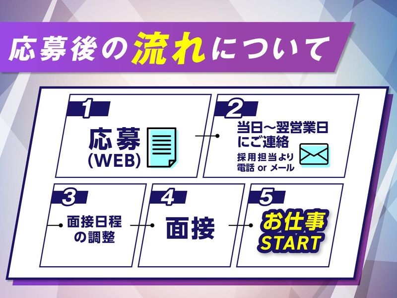 選考プロセス <WEBでのご応募> 24時間、応募受付中! 必要事項を記入のうえご応募下さい。 担当者よりご連絡させて頂きます。 <お電話でのご応募> 「名古屋のマイナンバーの 広告を見ました」と言って頂けると スムーズにおつなぎできます。 お電話がつながりにくい場合は WEBよりご応募ください。 <応募後の流れについて> [1] 応募(電話orWeb) ↓ [2] 当日〜翌営業日にご連絡 電話 or メール(採用担当より) ↓ [3] 面接日程の調整 ↓ [4] 面接 勤務地にて、面接会を開催します! ↓ [5] お仕事スタート! ⭐詳細はお気軽にお問い合わせください。