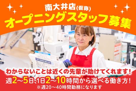 仕事内容 【 お仕事内容 】 ★2026年3月オープン! ★地域に寄り添うスーパーです! ★人と接することが好きな方歓迎! ★家庭と両立できます! ★生活を支える為のレギュラー勤務も◎ ――――――――――――― こんなことをお任せします! ――――――――――――― お任せするのは、店内でのレジ対応や セルフレジの見守りなどのお仕事です。 ■セミセルフレジ 商品のスキャンと金額の確定までを担当。 お会計はお客様自身で精算機にて行うので 現金を扱うことはほとんどありません◎ ■セルフレジ 複数台のセルフレジを見守りながら、 操作に迷っているお客様への サポートなどを行います。 忘れ物や操作ミスがないか 目を配る必要があります。 神経を使う場面もありますが、やりがいも十分! ■サービスカウンター業務 ポイントカード発行など、 状況に応じてお願いすることもあります。 ※オープンまでの期間は 近隣店舗での勤務も相談可能! 【 オーケーの魅力♪ 】 ■お仕事のあとは、そのままお買い物へ 夕飯の準備やお子さんのお迎えも スムーズに進められて助かります。 「忙しい毎日のなかで、 ちょっとした余裕が生まれました」 そんな声も届いています。 ■新しい職場でも、安心して始められます 丁寧な研修と、すぐ相談できる環境があり、 久しぶりのお仕事でも心配いりません。 「ちゃんと聞ける人がいる」 そんな安心感のある場所です。 長く働ける職場を探している方にも ぴったりの環境です。 ■ゆとりある人員配置で安心 1店舗あたり社員さんが18~19名いるので、 わからないこともすぐに相談できて安心♪ 業界的にも社員数が多い職場だから、 とっても心強いですよ! 【 しっかりした研修あり 】 \\2026年2月から研修スタート!(変更の可能性有)// 新店オープンに向けて、 しっかり準備ができる体制が整っています! <事前研修あり> ・他店舗での“お試し勤務”で現場を体感! ・合同研修で仲間と一緒に学べる♪ ⇒既存店舗で、仕事のやり方やルールまわりなど 基礎から実践までじっくり身につけられます! < オープン後のサポートも充実> ・経験豊富な社員がしっかりサポート! ・分からないことも、すぐに聞ける環境◎ ⇒オープン初日から1人にさせない安心の職場です♪ 【 南大井店へのアクセス詳細 】 京急線「立会川駅」改札を出て地上階へ進み、 線路下を進み、橋を渡って右手へ進んでください。 大通り(第一京浜)に出て 左折し道なりに進んでいただくと 南大井文化センターが左手に出てきますので 目の前の信号を渡り、左手の道に入っていただくと 右手に店舗がございます。 ★立会川駅近く・大井町エリアに新規オープン! 【 勤務形態について 】 この求人はパートナー社員の募集です! パートナー社員とは? 週20時間以上働く勤務形態です。 社会保険に加入でき、週40時間のフルタイム勤務など 契約社員のような働き方も可能です。 ※パートナー社員以外には アシスタントパートナー社員という働き方もあります。 アルバイト・パートとして、週20時間未満で働く 扶養内勤務可能な勤務形態です。