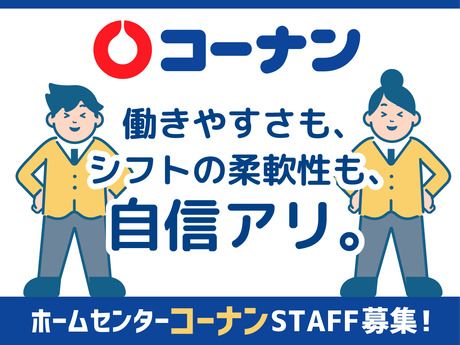仕事内容 *「ホームセンターコーナン」について* DIY用品、家庭用品、カー&レジャーなど 「住まいと暮らし」に関わる ありとあらゆる商品を網羅する、 地域密着型のホームセンターです。 お客様のちょっとしたお困りごとを、 膨大な量の商品、 そしてスタッフの提案によって、 オーダーメイドで解決できるのが強み。 「見ているだけでも楽しい」、そんなお店です。 *「仕事内容」について* 店舗業務全般をお任せします。 < 接客業務 > ・レジでの会計 ・お客様のご案内 < 商品補充業務 > ・商品の補充 ・品出しや陳列 < 店舗業務 > ・ディスプレイの変更 など いろいろな業務を担当できます。 最初から全てをお任せするわけではなく、 1つひとつ慣れていただけるのでご安心ください。 *「身近なコーナン」だから未経験startも安心!* 高校生からシニア世代まで 幅広い世代が活躍中のコーナン。 実は、ホームセンターでの経験や 販売のお仕事の経験があった方は、 ほとんどいないんです。 それだけ初心者に優しく、 スタートしやすい環境が整っています。 「アルバイトをするのも初めて」という方でも、 ゆっくり慣れていけますので何も心配しないでくださいね。 *未経験でも安心できる理由* 「商品が多いイメージなんだけど、 覚えるの大変じゃないかな…」 と思われることが多いですが、 全て覚えて頂く必要はありませんし 困ったときは先輩へバトンタッチで 問題ありませんよ! また店舗では商品を探す端末を導入! 聞かれた商品がどこにあるのかを スマホを扱う感覚で簡単に探せて ストレスなく接客が可能です♪ *超オトクな、従業員割引制度あり* 従業員割引制度でお得にお買い物♪ 生活必需品が安く手に入る嬉しい特典! コーナンのクレジットカードを使って お買い物をすると10%OFFで購入可能! 月15,000円までが割引対象◎ 最大1年間で180,000円もお得に★ ※社員割引対象者のみ ※他店舗でもご利用OK!! また皆さんへ年2回プチボーナスも!