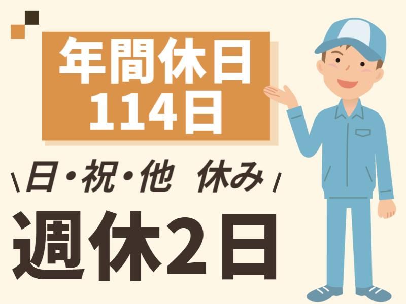 休日休暇 週休2日(日・祝・他)、会社カレンダーあり ※祝日がない週の土曜日は休日 *年間休日114日