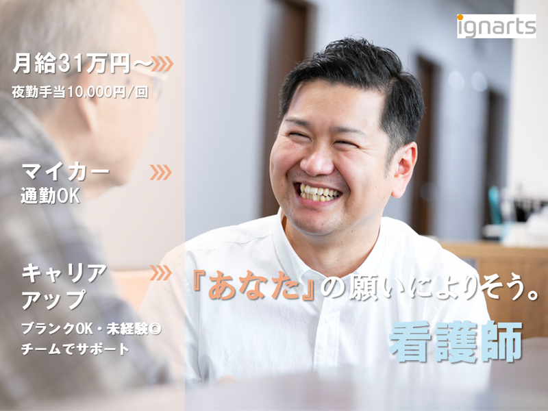 仕事内容 ☆・*。・――――――――――――――― 皆さんの転職理由を教えてください ―――――――――――――――・。*・☆ 夜勤が多いから? 子育てとの両立が大変だから? 相談できる人がいないから? 休みが少ないから? どんな理由でも大丈夫。 もしかしたら、その不安や不満―― ここで解決できるかもしれません。 私たち笑和グループは、創業以来 スタッフが「楽しく」「長く」働ける職場づくりを目指しています。 「子どもが熱を出したので付き添いたい」 「仕事のことで相談したい」 そんな声にも、みんなで寄り添い、 協力し合える環境を整えてきました。 あなたにも、そんな“人のあたたかさ”を ぜひ感じてほしいと思っています。 【仕事内容】~医療特化型有料老人ホームでの訪問看護業務~ ◎バイタルチェックなどの健康管理 ◎医療処置・服薬管理・医療アドバイス ◎入居者様とのコミュニケーション ◎「オリジナルコーヒー」の提供 ☕ ★ナーシング笑和みなみの特徴★ 2階建て45床(1階20床・2階25床)の新しく綺麗な施設です。 見通しが良く、入居者様もスタッフも動きやすい設計になっています。 1階:医療依存度の高い方中心 2階:要介護でも比較的自立された方中心 看護師の皆さんには、主に1階の医療ケアをお願いします。 また、2階の健康相談や緊急対応をお願いする場合もあります。 介護スタッフや往診医と連携しながら、チームで進めてくださいね。 そして、医療ケアが不要な方も含めて、すべての入居者様に 「温かく関わる」ことを大切にしてほしいと考えています。 ★★スタッフの想いを大切にします★★ 笑和グループは、創業以来13年間、介護に真摯に向き合ってきました。 今後は医療分野でも一緒に会社を支えてくれる方を募集しています。 「どんなことでも話し合える」「意見を言いやすい」 そんな風通しの良い職場を目指しています。 あなたの個性や想いを尊重し、 あなたらしく働ける場所にしていきましょう。 もちろん、キャリアアップも全力で応援します。 =============== ✨電話応募も受付中!職場見学も歓迎✨ 電話番号:052-693-5927 WEB応募は24時間、365日受付中! ホームページはこちら↓ https://www.ignarts.com/ ===============