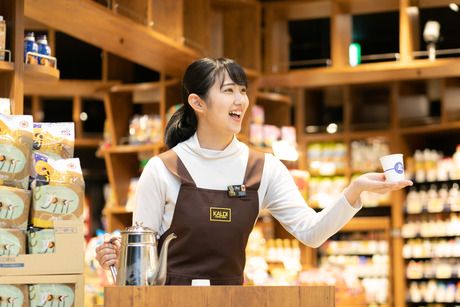 仕事内容 「いつ来てもワクワクする」そんな感動の空間をお客様へ提供しています。 「カルディコーヒーファーム」では 自然や環境、人への想いを大切に、日常に世界の食文化を提案しています。 活気溢れる市場のような店内で、 「宝探し」をしているような感覚を楽しんでいただきたい… そんな思いのもと、こだわりのコーヒー豆をはじめ、 見ているだけで楽しくなる商品を取り揃え、お客様へ"ワクワク"をお届けします。 コーヒー豆や輸入食品を扱う「カルディコーヒーファーム」での接客・販売のお仕事です。 コーヒーサービス・品出し・レジ・接客など基本的業務から始まり 売上管理やスタッフ育成などのマネジメントまで幅広い業務を担当します。 商品選定・発注や商品レイアウト 季節を感じるイベントコーナーなど、売り場作りにも携わります。 おすすめ商品のご案内やレシピの紹介など…お客様との会話を大切に、商品の魅力を伝えるお仕事です。 未経験の方にも安心して活躍いただける研修制度が充実!スキルアップができる環境です。 入社後から、ビジネススキル・接客などを学べる社員研修があります。 昇級のための等級別研修で段階的なスキルアップもでき、 実際に産地を訪れ、生産者の思いに触れる国内外の研修も実施しております。 商品知識を身につける「社内検定制度」では、 合格者にピンバッジを授与するなど、スタッフの成長を応援する制度が充実しています。 店長へのキャリアアップ、生活を支援する福利厚生…長く働ける制度があります。 ライフイベントやキャリアを支援する“子育て両立支援”や スタッフの健康管理を支援する“健康支援”の制度があります。 年間休日120日、全社員を対象とした賃上げなど、 時代に合わせた制度の見直しも進めています。 長く働く中で、経験を積み、ゆくゆくは店長からその先までキャリアアップも目指せます。 異業種からの転職も多数。チームワークを活かして、仲間とともに成長を味わえます。 カルディコーヒーファームが好きな方はもちろん 接客・販売に興味がある方も歓迎です。 飲食・アパレル・ホテルなど 異業種から入社したスタッフも多数活躍しています。 仲間とのコミュニケーションを通じて、 チームとしての一体感を感じることができる職場です。 当社でぜひ活躍してみませんか?