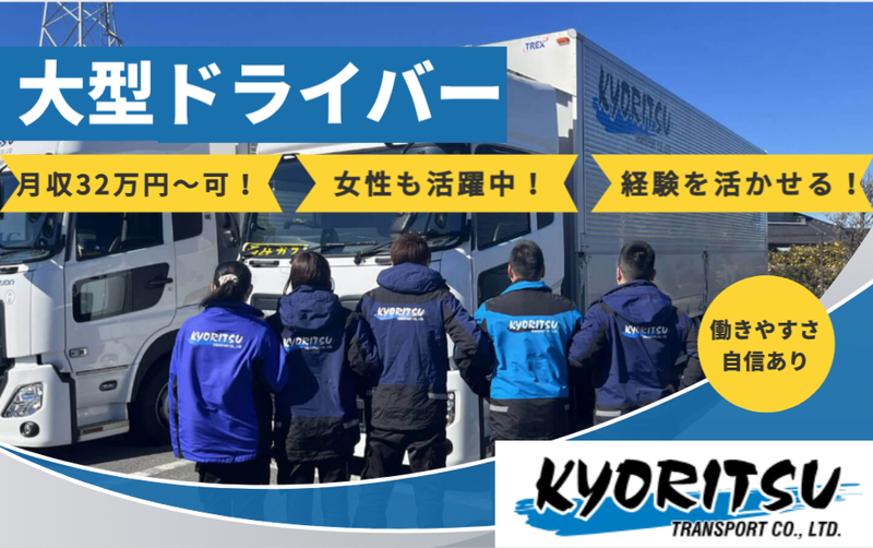 求めている人材 ◇必須条件◇ ◆大型免許をお持ちの方 ◇歓迎条件◇ ◆フォークリフト免許をお持ちの方 ※研修中に取得可能です! <こんな方におすすめ> ◆安定した環境で長く働きたい方 ◆ステップアップを目指している方 ◆明るい職場で働きたい方 経験者だけでなく、未経験者も積極的に採用しています。 これまでのキャリアに関係なく、 新たな挑戦をしたい方をお待ちしています!