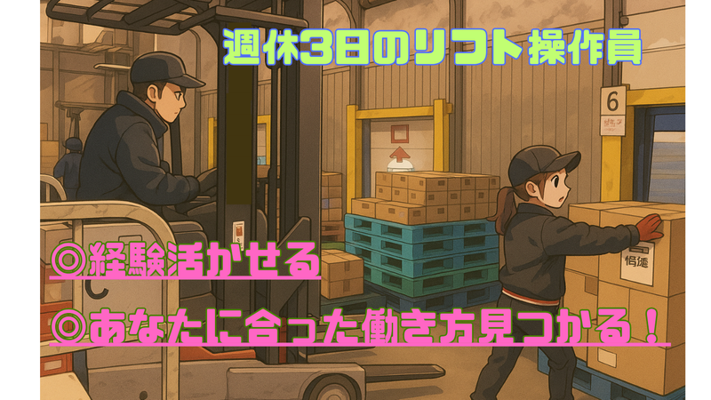 仕事内容 ✅応募条件: 日本国内で就労制限のない在留資格をお持ちの方 \「えっ、年間休日157日!?」っと思ったそこのあなた!/ そんな働き方、ここにあります✨ 大手物流センターでのシンプルな倉庫内作業です! ───✨注目ポイント✨─── ✅ 年間休日157日!!(週休3日制) ✅ 大手商社の物流センター勤務で安定感バツグン ✅ 女性社員も多数活躍中! ✅ポテンシャル採用! 学歴・経歴不問、ブランクOK。(※面接では人柄重視でお迎えします!) ◎リフト経験、ここで活かす! ―――――――――――――――――――――― 【仕事内容】 リーチ式リフトを使った入出荷業務がメインです。 以下の業務をお任せします! ✅ 入荷対応:届いた荷物を指定棚へ格納 ✅ 出荷対応:パレットに積まれた商品をエリア・出荷口まで移動 ✅ 軽作業サポート:合間にピッキングなど簡単な作業もあり \集中+チームワーク=ちょうどいい/ モクモク働ける時間もあり、仲間との連携もあり。 倉庫内は広く、商品量も多いため、 自然とチームプレーが大事になる職場です! 「午後の入荷、お願いできる?」 「OKです!」 こんなやりとりをしながら、 イレギュラーな状況もチームで乗り越えます。 【こんな方に向いています】 ✔ リーチリフト操作が好き・得意 ✔ 黙々作業も、人との連携もOK ✔ 大きな現場で安定して働きたい ✔ スピードより“正確さ”重視 【勤務環境・待遇】 ◇週休3日制(年間157日) ・プライベートも充実しながらバランスの取れた働き方ができる✨ ◇ 扱う商品は? 大手スーパー向けの冷蔵・冷凍・常温食品が中心 (主にチルド倉庫:5〜7℃) ※防寒着貸与あり ⭐無料送迎あり! ・阪神「鳴尾駅」 ・阪急「武庫之荘駅」 ・JR「甲子園口駅」 ※マイカー通勤もOK! --------------- ポーターズはスプラウト・イットグループの一員として、 全国で物流事業を展開中。 大手企業からの信頼も厚く、長く働ける環境です!
