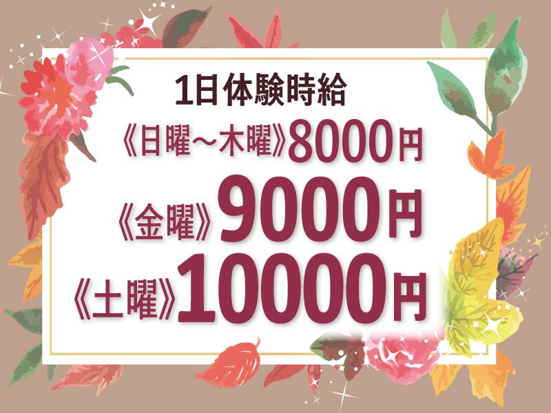 アピールポイント: ✨GARDENの魅力がいっぱい!✨ ✅高時給スタート! 未経験でも時給4,000円~! 頑張り次第で10,000円以上も目指せる環境です。 ✅1日体験OK! 1日体験時給8,000円以上! 金曜日に体験した場合は時給9,000円、 土曜日に体験した場合は時給10,000円に上がります。 本指名やボトルバックがあれば 歩合給も全額支給します! お店の雰囲気を見てからスタートできるので安心です。 ✅自由シフト制! 週1日~、1日2、3時間からOK! フリーター、Wワークの方も 自分のペースで働けます。 ✅待遇が充実! ドレスやワンピースの無料レンタル、 ヘアスタイリスト常駐で準備の負担なし! 個人ロッカーや専用更衣室も完備で安心。 ✨プライベートも充実!✨ 残業は一切なし! 営業時間内で業務が終了するので、 定時でしっかり帰宅できます。