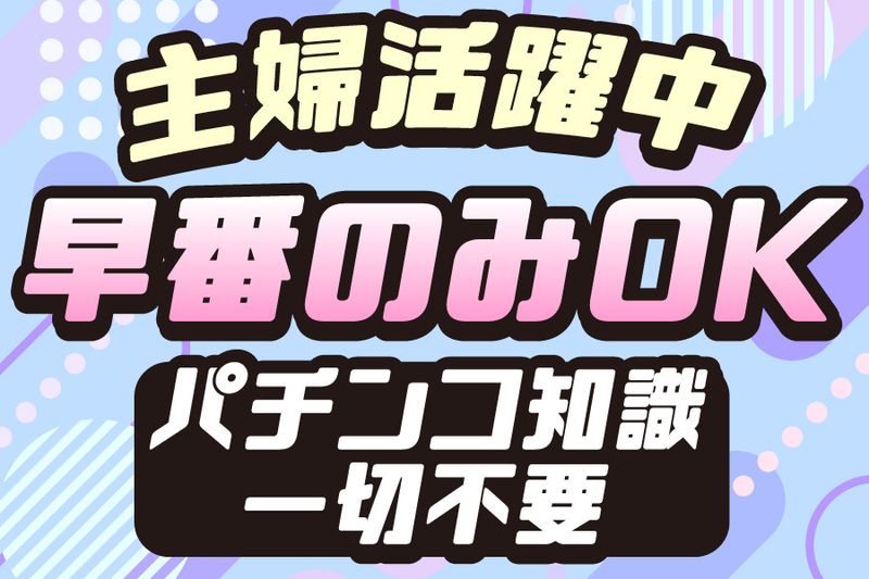 【アピールポイント】 ⭐家庭と両立しやすいホールスタッフ募集⭐ パチンコ・スロット店での景品交換スタッフ募集! ※土日のどちらか勤務できる方の募集です ✅ 週2日から働ける ✅ 知識・経験不問・丁寧なフォロー体制あり ✅ 力仕事なしで働きやすい ✅ 冷暖房完備で一年中快適 ✅ 早番勤務のみで安心 職場見学を実施中! まずはお気軽にご連絡ください✨