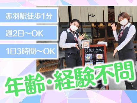 仕事内容 デザイナーズホテルSTAFF 【雇用形態】アルバイト・パート 【勤務時間】7:00~11:00 1日3時間~/週2日~OK◎ 【勤務地】実乃里 de バル (赤羽ホリックホテル内) (東京都北区赤羽1丁目4番4号 1F) 【給与】¥1,230 ~ ★昇給あり 【応募条件】未経験歓迎! ■フリーターの方もバイト掛け持ちOKです! ■シフト調整は柔軟に対応! ー ▼ホテルの詳細はコチラ♪ https://www.holichotel.jp/akabane/ ▼当社の詳細はコチラ♪ https://granbellhotel.com/ ー *【デザイナーズホテル×ホールstaff】* ★-★ 一緒にホテルを盛り上げよう♪ レストランホールstaff大募集! ★-★ テラス席がある開放的な空間が自慢の レストランにてホールのお仕事をお任せします! <具体的には・・・> ●お客様のご案内 ●オーダー ●ドリンク作り ●料理の提供 など ホテル業界・接客業・飲食業が初めての方も 少しずつ慣れていくことができます! 研修&社員のフォローがあるので 未経験の方でも安心して始められます♪ *【就活に役立つスキルが身につく★】* プライベートでも役に立つ、マナー、立ち振る舞い、正しい言葉遣いが身につきます。 就職活動や、将来にも役に立つスキルです。 初めてのバイトデビューや大学生の方にもオススメのお仕事です★ 《下記職務経験のある方も活躍中!!》 接客、販売、飲食、ホールスタッフ、居酒屋、ファミリーレストラン ▼以下のアルバイト・パート経験も活かせます ホテル、カフェ、コンビニ、カラオケ、清掃、軽作業、データ入力、コールセンター、スーパー、品出し、短期・短時間バイト など \駅近!デザイナーズホテル!/ JR「赤羽駅」東口を出て、徒歩1分の場所にある「赤羽ホリックホテル」。 勤務地はその1階にあるレストラン・BAR「実乃里 de バル」です! 【語学も活かせる◎】 観光で来られるお客様や海外からのお客様も多く、幅広い層にご利用いただいております! 海外からのお客様も多いので、英語、中国語、韓国語、イタリア語、フランス語などを使う場面もありますよ♪ 外国語が話せなくてもOK!他スタッフがサポートします! 外国人スタッフ、留学生スタッフも活躍中! 【主婦(夫)、学生さん、フリーターさん活躍中!】 当社の他ホテルでは、短時間勤務の主婦さん、授業がない日だけ・授業終わりに勤務の学生さん、週5日×フルタイムのフリーターさんなど、在籍しています。 プライベートとうまく両立しながらお仕事、始めてみませんか? 【魅力いっぱいの赤羽ホリックホテル★】 ・お客様から直接感謝の言葉をいただけるやりがい! ・日々変化する環境で新鮮な気持ちで仕事に取り組める楽しさ! ・美味しいまかない付き♪