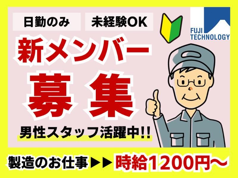 仕事内容 <<おすすめポイント!>> ✅日勤のみで時給1200円~ ✅コツコツとできる作業 ✅経験や資格は必要なし ✅社員食堂あり お昼ごはんが341円(税込み) << 仕事内容 >> ガラスクロスと呼ばれる繊維メーカーの 工場でのお仕事です。 ▼具体的には… ■製織におけるヨコ糸の巻き芯チェック ■場内の整理整頓 ■製織で発生する糸くずの回収 ■製織機械の清掃 ◎未経験で始めたミドル層の 男性スタッフ活躍中! ◎特別な資格や知識は不要! / 富士テクノロジー株式会社です \ 2007年に派遣事業を始め、 三重・岐阜で地域に根差した会社です 地元だからサポートが丁寧で迅速 企業様とも良好な関係性が自慢! 入社するまで、で終わらない 入社してからのサポートが違います お仕事をお探しの方は ぜひお気軽にご相談ください