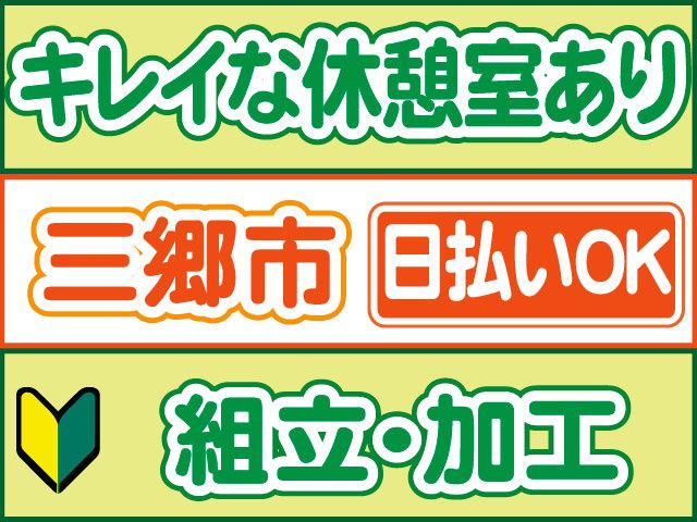 仕事内容 大手企業での高時給案件 新しい施設で清潔な休憩室完備 (Wi-Fi完備や施設内コンビニあり) 入社後のアフターフォローに自信あり 「窓サッシの組立・加工スタッフのポイント」 〇未経験OK 〇経験不問、反復作業が得意な方におすすめ 〇日勤のみ 〇土日祝休み、大型連休あり 〇高時給1,500円スタート 〇20代30代40代の男女活躍中 〇日払いOK(規定内) 〇履歴書不要 〇職場見学OK(30分~1時間程度) 〇「マイリク定着支援」導入企業 【窓サッシの組立・加工スタッフの仕事内容】 三郷市にある工場でのお仕事 主な仕事は ・住宅用窓サッシの組立 ・穴あけ加工 ・ビス締め作業 など をお願いします。 実務経験は問いません! これまでの経験を活かして即戦力として活躍したい方、 コツコツと作業するのが好きな方にはピッタリの環境 施設も新しく、Wi-Fi完備や施設内コンビニもあり、 快適に働ける環境が整っています 【窓サッシの組立・加工スタッフの勤務について】 ・日勤のみ(8:30~17:20※実働7時間50分) ・土日祝休みで週休2日制 急な発熱・体調不良・冠婚葬祭など、 突発的なお休みに柔軟に対応しております 【こんな経験活かせます!】 下記経験者は前職活かせます。 〇製造業パート・アルバイト 〇工場作業パート・アルバイト 〇組立・組付パート・アルバイト 〇機械加工、マシンオペレーターパート・アルバイト 〇倉庫内派遣 〇主婦(夫)パート 前職不問で採用しております。 ブランクのある方もOK(経験の浅い方もOK) ご不明な点はお気軽にお問い合わせください お電話でのご応募、ご質問も受付中 株式会社ロフティー 白岡支店 担当営業、または採用担当まで TEL0800-222-6888(フリーダイヤル) お仕事情報など採用ページはこちら https://entori.jp/lofty-shiraoka コーディネーター・定着支援のWサポート体制導入 「マイリク定着支援」導入企業! アンケートで職場の様子を確認し、 コーディネーター・定着支援担当が連携してサポート。 はじめての派遣でも安心して働けるよう迅速かつ 丁寧にサポート対応いたします。