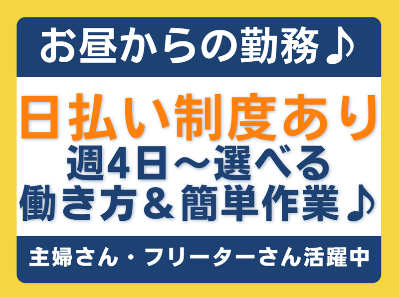 【日払い制度スタート】週4日~OK!昼からのゆっくり勤務♪