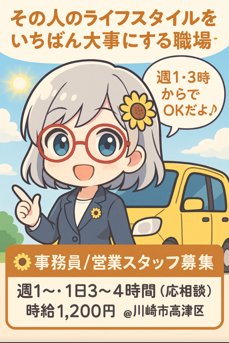 アピールポイント: ◆ ガツガツしない営業です。 売り込みやノルマはありません。 居宅事業所を巡回し、顔を合わせて関係を深めていく仕事です。 ◆ 未経験から始められます。営業経験は問いません。最初は同行からスタートし、仕事の進め方は丁寧にフォローします。 ◆ チーム立ち上げメンバーです!営業チームはこれから皆で作っていく段階。ルールややり方も、責任者と相談しながら一緒に形にしていきます。 ◆ 面倒見の良さには自信があります「一人で放り出す」「丸投げ」はしません。 困ったことがあればすぐ相談できる環境です。 ◆ 働き方は柔軟です1日3時間程度・週1日~OK。事務所が開いている時間内で、無理のない働き方ができます。 ◆ 営業っぽくないと言われます。数字や成果だけを見るのではなく、人との関係づくりを大切にするスタイルです。 ◆ まずは話を聞くだけでもOKいきなり決める必要はありません。仕事内容や雰囲気を知ってから判断していただけます。