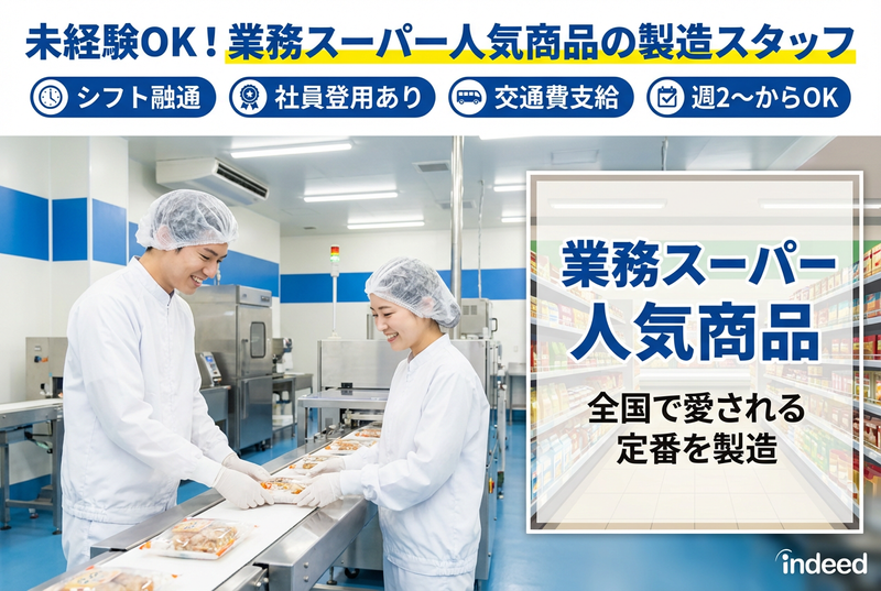 仕事内容 仕事内容・アピールポイント \15~20名程度のスタッフと協力して進めます/ ⏩生産計画の確認や進捗管理 ⏩原材料の仕入れ確認 ⏩食品原材料や梱包資材の在庫管理 ⏩人員配置・シフト作成 ⏩従業員向け教育・研修 製造スタッフ(リーダー候補)の募集です。 ▼募集要項 【雇用形態】正社員 【給与】年収:350万~450万 【勤務時間】日勤のみ(固定シフト) 【勤務地】滋賀県蒲生郡竜王町山面460番地 【募集要件】未経験OK ⭐この求人のポイント⭐ ✅売上4,000億円超の上場グループで安定 ✅年間休日120日(有休含む)でしっかり休める ✅賞与年2回(約3ヶ月分) ✅日勤のみで生活リズム安定◎ ✅リーダー候補スタートで早期キャリアアップ可能 【会社について】 全国に展開する「業務スーパー」向けに、冷凍うどん・サラダ・調味料などを製造している食品メーカーです。 2020年には最新工場を新設し、「安くて美味しい」を支える中核工場として成長中です。 【仕事内容詳細】 <製造工程> 材料受け入れ → 洗浄・カット → 加熱調理 → 検品 → 出荷 → 清掃 ※機械操作はタッチパネル中心で簡単 ゆくゆくは… ・生産管理 ・在庫管理 ・人員マネジメント などにもチャレンジできます。 ★入社後の流れ★ ①基礎研修(衛生・安全ルール) ②各工程を数ヶ月かけて習得 ③徐々に管理業務へステップアップ 未経験入社が多く、教育体制はしっかりしています。