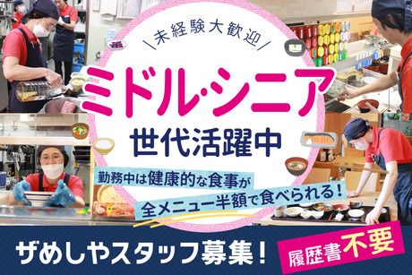 仕事内容 【仕事内容】 <未経験ok♪幅広い世代のstaff活躍中☆> <食事補助あり☆メニュー全品50%off♪> <頑張りに応じて昇給あり☆> <★ホールの仕事内容★> ・バッシング ・レジ業務 ・システムのご案内 ・お食事の温め・配膳 ・テーブルの備品補充 など <★ザめしやのここがオススメ★> ・メインはバッシング! →配膳のお仕事よりもダントツ多いです☆ セルフカフェテリアの業態なので ほとんどはお客様がセルフで お料理を運ばれます♪ 温かいお料理や調理に時間のかかるメニューのみ お席までお持ちします★ ・テキパキとした店内の雰囲気! →レジ業務からバッシングがメインなので テキパキ行動するスタッフが多いです♪ 店舗の動きや空気感を読めるようになるので 勤務時間があっという間に過ぎてしまいます☆ ・勤務中にご飯を食べる場合、メニュー全品50%off →和洋中様々な栄養満点のご飯が半額! その日の気分に合わせてメニューを組み合わせて 食べることができます♪ ダイエットや食事管理中・コンビニ食が多い方には よりオススメの福利厚生です★
