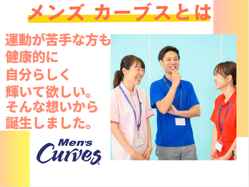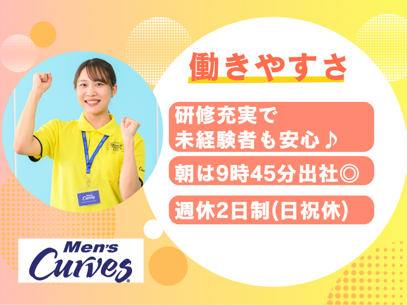 仕事内容 ━━━━━━━━━━━━━━━━ \\ ✨8月 NEWOPEN✨// ✿オープニングスタッフ大募集✿ ━━━━━━━━━━━━━━━━ 新しい店舗×新しい仲間と 一緒にスタートしませんか?? いまだけの"OPEN募集"で、 イチから一緒にお店づくりに関われる♪ 全国で展開する「Curves」の男性版 オープニングスタッフを大募集♪ ╭━━━━━━━━━━━━━━╮ メンズ・カーブスとは ・・・? ╰━v━━━━━━━━━━━━╯ “楽しく気軽に身体を動かす場”として 女性専用フィットネスを 展開してきたカーブス。 顧客満足度は11年連続で No.1を獲得しています(※)。 この度、そのカーブスが監修した 男性専用スポーツジム【メンズ・カーブス】 が姫路市にオープンします! 来店される方は健康寿命を延ばしたい シニアの方や、「ちょっと体重が増えて…」 「何をしてもお腹まわりが減らない」 「運動不足解消」など様々。 これまで運動に一歩を踏み出せなかった 多くの男性の健康習慣づくりに貢献します。 空き時間はマシンの使用もOK! 自分の健康も維持しながら働けます! ※公益財団法人日本生産性本部サービス産業生産性協議会「2025年度JCSI(日本版顧客満足度指数)」フィットネスクラブ部門 ・・・――――――――――――――――― ⭐プライベートも充実⭐ お休みもしっかり取得! 接客業でイメージするような 「休みが少ない」なんてことはありません。 日曜・祝日休み、大型連休もあるので、 休みが少ないからとあきらめていた方も 働きやすい環境でワークライフバランスを 実現しましょう! ⭐未経験者も安心して始められる!⭐ 特別な資格も必要なく、「カラダ」や 「健康」についての知識がなくても◎ 仕事に必要な知識は、イチから 丁寧に研修でお伝えします♪ 未経験の方も活躍しています!! ・・・――――――――――――――――― 【 仕事内容 】 お任せするのは、メンズカーブスに 来られるお客様のサポートです♪ ✅入会や見学に来られた方への対応 ✅受付対応・カンタンなご案内 ✅プランや施設の使い方のご説明 ✅マシンの使い方を優しくご案内 ✅データ入力などの事務作業 など、明るい接客と会話が中心のお仕事! ※専門的な『トレーナー』ではないので、 会員様の前で体操の見本を 見せたりすることはありません! 「誰かの健康を応援したい」 「人と話すのが好き」 そんなあなたにピッタリ⭐ ・・・――――――――――――――――― <アイデア活かせる!やりがいバッチリ◎> まずはしっかり丁寧な研修からスタート! 運動の知識がなくても大丈夫◎ 未経験の方や、他業種からの転職も大歓迎♪ ✨ お客様1人ひとりに寄り添って、 「今日は調子どうですか?」 「がんばってますね!」と声をかけたり、 気持ちよくトレーニングできるように 全力でサポート♪ 通うお客様は―― ・「筋肉つけたい!」という若い方 ・「健康を維持したい!」という ミドル・シニア世代などさまざま! あなたのアイデアや心配りで、 「ここに来てよかった!」と思って もらえるようなお店を、 一緒に作っていきましょう!