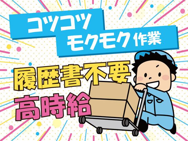 仕事内容 効率的な物流を支える「ピッキング&棚入れ」のシンプルワーク! Pick: 指示書を確認し、該当する段ボール製品を棚からピックアップ。 Move: 台車を使って、指定のエリアまでスイスイ運搬。 Place: 決められた保管スペースの空き場所に、製品を適切に配置。 【★オススメポイント★】 ルーティン作業中心: 覚えることはシンプル。一度流れを覚えれば自分のペースで進められます。 負担少なめ: 台車を使用するため、長距離を重い荷物を持って歩くような無理な負担はありません。 整理整頓の達成感: 乱れていた棚が綺麗に埋まっていく心地よさを味わえます。 ・・ー・・+・・ー・・+・・ー・・ \\”ココ”がおすすめ // ❖コツモク作業❖  ̄ ̄ ̄ ̄ ̄ ̄ ̄ ̄ ̄ コツコツ・モクモク・自分のペースを崩さずに 仕事をしたいと考えている方にピッタリのお仕事! 簡単な作業なので、未経験の方も安心♪ ❖履歴書不要!❖  ̄ ̄ ̄ ̄ ̄ ̄ ̄ ̄ ̄ 用意が面倒な履歴書も必要ありません! WEB登録だけで働けちゃいます◎ お友達と応募もOK! \スタッフの声 / ❖20代男性 派遣で働くのは初めてで不安でしたが、 わからないことがあればすぐに声をかけてくれて助かりましたし、 フォーマットがあるので、すぐに仕事を覚えて慣れることができました! ・・ー・・+・・ー・・+・・ー・・ \\面接なしで働ける!?// お電話で簡単に経歴、ご経験をお聞きした上でお仕事をご紹介! なので、面接や履歴書は不要です◎ 就業後は… 1週間後にご状況やお困りごとがないか確認しますので、なんでもご相談くださいね! 更新のタイミングでも実際にお会いして面談を行います。 基本的に担当者が変わることはないのでご安心くださいね!