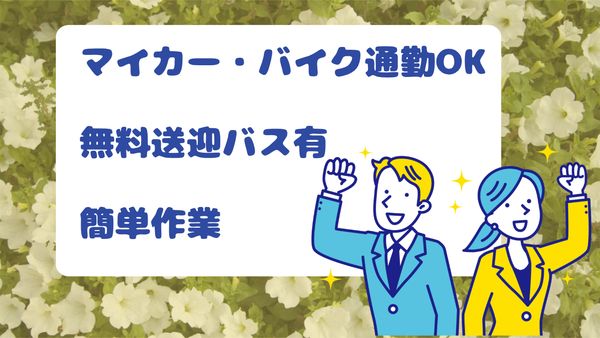 マイカー・バイク通勤OK【平日のみ・土日祝お休み♪】日払い、週払いOK・無料送迎バスあり!制服あり