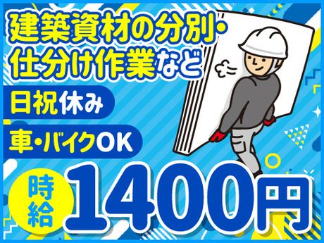 仕事内容 <長期レギュラー募集!> 【建築資材の分別作業】 工事現場や倉庫内から集められた建築資材(木材、金属、プラスチックなど)を種類ごとに分ける作業です。 資材を手作業で仕分け、再利用のために整理整頓します。 時には重い資材を取り扱うこともあるので、ガッツのある方のご応募は大歓迎! 【特徴】 建築資材の取り扱いや運搬作業は力仕事が中心となるため、20~40代の男性が活躍している職場です。 体を動かしながら働くことができます。 <こんな方におすすめ♪> ・体を動かすのが好きな方 ・長期のお仕事で安定して稼ぎたい方 ・シンプル作業を希望する方