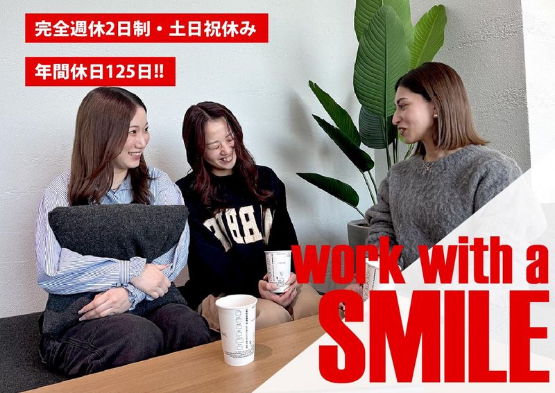職場環境 年間休日125日以上の完全週休2日制で土日祝休みのため、プライベートとのバランスが取れることも当社の特徴です。また福利厚生も上場企業並みに充実しており、Netflix無料などプライベートで楽しめる140万件以上の優待サービスもご利用いただけます。 喫煙所:喫煙所あり(屋内) オフィス内分煙(喫煙ブースあり)