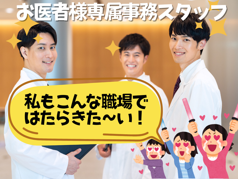仕事内容 「有名な病院で働いてみたい」 「医療業界ってお給料いいのかな」 「病院で働いてるってハイスぺっぽい」 「安定してる業界ってイメージが強いよね」 「お医者さんと一緒に仕事って憧れる」 医療系のドラマを観ながら 「病院の仕事、気になるな(・ω・,,)」 「でも、資格とか経験とかないと 無理だよね…(・ω・`)」 と思ったことがある方! このお仕事なら 【未経験】【無資格】 のあなたも活躍できちゃうんです! 病院の事務スタッフとして 一歩を踏み出しませんか? ・・・・・・・・・・・・・・ <お仕事内容> 医師の事務サポートをお願いします。 *診断書などの⽂書作成補助 *診療に関するデータ整理 *診療記録への代⾏⼊⼒ *電話対応 *その他、医師の指⽰による補助業務 など わからない業務に関しては 丁寧に教えていくのでご安心ください♪ \勤務先について/ 「⾙塚駅」から徒歩10分の総合病院! 車・バイク・自転車通勤もOKです◎ 病院内にある売店・喫茶店・食堂は スタッフも利用できます♪ ∴‥∵‥∴‥∵‥∴‥∴‥∵‥∴‥∵ ▼スタッフの声をご紹介▼ ■30代/薬局での事務経験あり 前の職場でも大体同じ仕事をしていました。 業務自体は自分には合っていたのですが、 いわゆるスタッフ間の『派閥』がすごくて…。 ○○さんがああした、 △△さんがこうしたとか もうウンザリで。 なので辞めました(笑)。 でも仕事自体は好きだったので また同じ感じで出来れば…と 求人を探していたら見つけたのがここ。 病院での勤務は初めてでしたが、 レセプトや書類関係は 大体同じなので仕事も すぐに覚えられました。 病院だと時間もきっかりしているのが良いですね。 おかげでほぼ毎日定時上りしてます♪ 前よりも給与がアップしたので たまに外食を楽しんだり 気になってるカフェに気軽に行けるように なったのも嬉しいですね。 これからさらに医療事務のスキルを 伸ばしたいので資格取得も 挑戦しようと思います◎