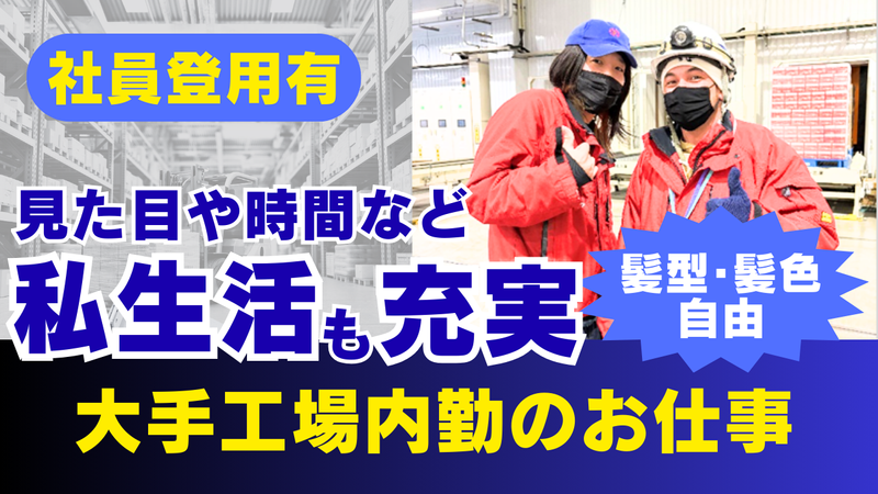 【保険制度】 雇用保険、労災保険、健康保険、厚生年金 待遇・福利厚生 【福利厚生】 ◆社会保険完備 ◆交通費全額支給 ◆定期健康診断(特殊健康診断) ◆インフルエンザ予防接種 ◆社員登用制度あり