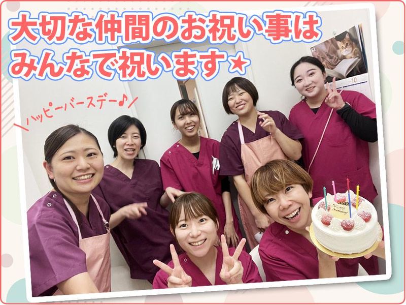 仕事内容 女性院長の下、家庭やプライベートも両立できる環境☆ 産休後復帰率100%!戻ってきたくなる職場で働きませんか。 ――― お仕事内容 ――― ◇受付やカルテ記入 ◇診療後の会計 ◇問合せ対応等事務作業 ◇獣医師の診察・手術等院内業務の補助 ◇ペット関連の商品の販売・会計 など <愛のある対応のできる方歓迎!> ホームページに家族構成として、 愛する動物の紹介をするくらい 愛情を持っています。 (詳しくはホームページをご覧ください) 当院の考え方に共感できる方と一緒に お仕事をしたいと思っています! せっかくの資格や経験を当社で活かして みませんか? <産休取得復帰率100%!> 家庭と仕事の両立を全員が出来る環境で 産休から復帰した主婦のトリマーさんも 活躍中です!産休取得復帰率は100%◎ 他の動物病院やサロン、ペットショップ などをメインに勤務されていて、現在 休業中の方も、お気軽にご相談ください! <無理なく長く働いて頂きたいので…> 今回の募集は設立8周年を迎えるに あたっての増員募集となります。 無理なく働ける環境を整えるため! 産休に入るスタッフの為! 長く働いて頂きたいので、新しい 働き方を推奨しています。 ☆有給取得率も100%! 「今は時短や日数短縮での勤務」の方で ゆくゆくはフルタイムや正社員としての 働き方へのシフトをお考えの方は、ぜひ ご相談ください! 経験・知識を眠らせるのはもったいない! 色んな働き方がある中で、あなたの能力を 当院で発揮して頂きたいと思っております。 ** ここがポイント!** ・女性院長の和やかな動物病院 ・産休後復帰率、有給取得率ともに100%! ・ライフステージが変わっても無理なく長く働ける環境