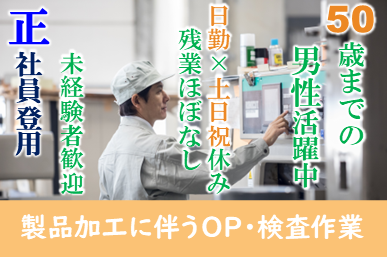 応募条件 ≪未経験者大歓迎!≫ 工場で働いた経験のない方でもしっかりサポート! 充実した教育プログラムがあるので安心して働けます。 20代・30代・40代・50代男性、女性先輩スタッフ活躍中!