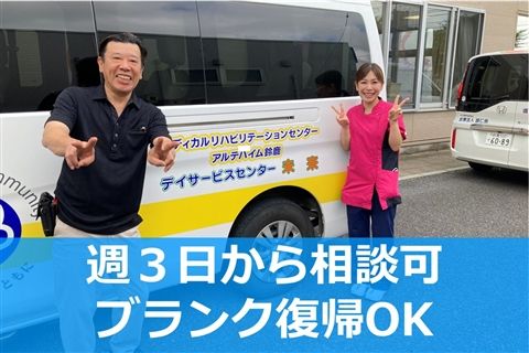 <管理者に聞きました> ◎プロフィールを教えてください 「デイサービスセンター未来」で初めて介護職を経験し、入職7年目になります。娘が2人いて、体を動かすことが好きです。趣味は音楽を大音量で聴くこと、たまにライブに行くこと。機会があればバレーボールもします。 ◎職場の良いところはなんですか? 当事業所では、1日平均25~30名のご利用者様がいらっしゃいます。利用者様と職員の距離が近く、皆さん明るく楽しく、たくさんの笑顔が見られます。スタッフは元気で明るい性格の人が多く、人間関係も良好です。スタッフは14名、他にドライバーが6名います。入浴やレクリエーションを通して利用者様と近くで関わることができ、和気あいあいと楽しく仕事ができます。制服貸与があり、有給休暇も取りやすい雰囲気です。 ◎最後にメッセージお願いします! スタッフの中に悩んでいる人や困っている人がいないか、笑顔で働けているかを観察するように心がけています。どんなことでも話を聞き、スタッフとのコミュニケーションを大切にしています。楽しい仕事があなたを待っていますよ! <介護スタッフに聞きました> ◎入職のきっかけはなんですか? ・職場の見学時、和やかな雰囲気と利用者様が楽しそうに会話している姿を見て、居心地の良さを感じました。 ・介護の勉強をして資格を取りたいと思い、この職に就きました。 ・自宅から通いやすかったからです。 ・法人が大きく安定していると感じました。 ◎職場の良いところを教えてください! ・先輩・後輩関係なく皆がコミュニケーションをしっかり取り、楽しく働いています。 ・たくさんの人と出会い、会話を通じて多くのことを学ぶことができます。 ・利用者様との関わりが増えることで会話が弾み、コミュニケーションが楽しくなります。 ・利用者様と一緒に体操や脳トレをすることで、自分の健康にもつながります。 ・介護を通して利用者様をサポートし、感謝の言葉をいただくことでやりがいを感じられます。 見学やご質問も受けつけていますのでお気軽にお問い合わせください! ・本エントリーの前に話を聞いてみたい! ・働く時間について質問したいことがある! ・「今すぐ働きたい!」や「来年度から働きたい!」などなど ご不明な点があればお気軽にご相談ください。 また、職場の雰囲気を見てから決めたいという方は 職場見学も実施していますのでお気軽にお問い合わせください♪