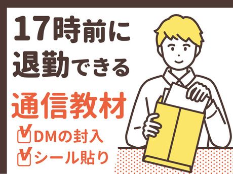 仕事内容 通信教材関連DMの封入・シール貼り ::::::::::::::::::::::::::::::::::::::::: 20代~50代迄幅広く活躍中! 会話少なめ!!コツモク簡単作業◎ ::::::::::::::::::::::::::::::::::::::::: DMの封入・シール貼りのお仕事です♪ 【具体的には…】 ◆DMを分類し、出荷先ごとに仕分ける ◆DMを丁寧に封入する ◆ラベルを封筒にペタッと貼る など 初めての方でも半日あれば覚えられます! それでもわからないことは先輩staffが 丁寧にサポートするので安心して下さいね♪ ★☆ スポット・ド短期・単発OK ☆★ ●働き方は自由自在! ●スキマ時間や空いている日を有効活用できる! ●平日だけ、土日だけもOK! ●1日~OKのスポットワーク! ━━━━━━━ ★こんな方に★ ━━━━━━━ ■長期休暇に自由にお金を使いたい! ■週末の飲み会に向けてお金が欲しい ■会話少なめで簡単な仕事が欲しい など ★☆嬉しいメリットを教えてください!☆★ 【1】日払いOK 「急な出費のときに本当に助かる…」 「欲しいものがすぐに買えます♪」 「遊ぶ予定の前にサクッと稼いでます!」 【2】短期OK 「長期休みのときだけ働いてます!」 「次の仕事が決まるまでの"繋ぎ"で」 「季節限定のオシゴトだけ♪」 【3】シフト自由 「週1、2日で無理なく働けてます◎」 「学校がない土日メインのシフトです!」 「夜勤も選べるのでWワークで働いてます」 ★☆ スタッフの声 ☆★ ▼40代staff 「家庭と両立して働けています。 子育てが落ち着いたらもう少し シフトを増やしてみようかな!」 ▼20代staff 「アルバイトをしていたけど 急にシフトに入れなくなって 困っていたときに応募しました!」 みなさん、学校・家庭・他のお仕事など と上手に両立しながら働いていますよ♪