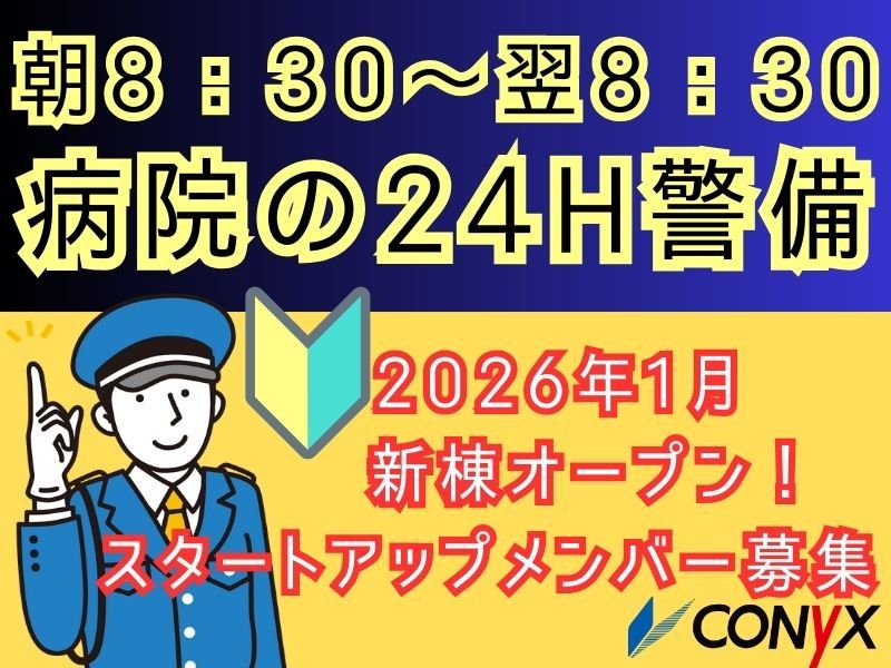 【仕事内容】 ⭐1勤2休の当直警備/資格取得支援あり⭐ \2026年1月新棟オープン!オープニングスタッフ募集!/ ⭕最新設備の新しい環境! ⭕広々とした警備室で勤務出来ます! 【仕事内容】 ✅出入り管理 ✅巡回警備 ✅施錠の確認 ✅緊急時の対応 など、院内の安全管理が主なお仕事です。 ⭕安心・安全の夜間対応 夜間でも複数で警備を行っていますので安心して勤務スタートが可能です! ~~~~~~~~~~~~~~~~~~~~~ 充実したサポートが自慢です ~~~~~~~~~~~~~~~~~~~~~ 創業70年以上のコニックスだからこそ、 働くスタッフへのフォロー体制は抜群です! ⭐覚えられるまで丁寧にしっかりとサポート! ⭐必要時には担当スタッフがすぐにフォロー! 【求人ID-AZR03A】