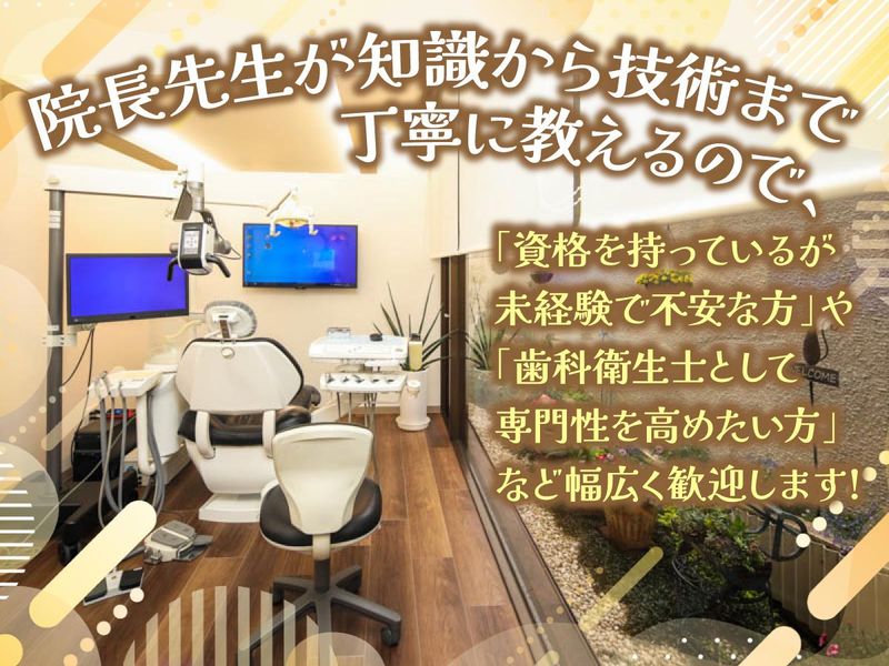 求めている人材 ◎歯科衛生士資格 ◎経験者歓迎! ◎未経験者も歓迎! ◎ブランクOK! ◎WワークやかけもちOK! ◎育児明けで久しぶりの職場復帰もOK! ◎女性活躍中! <こんな方を歓迎します!> ・人と話すのが好きな方 ・チームワークを大切にして働ける方 ・明るく前向きな姿勢で業務に取り組める方 ・明るく挨拶の出来る方 ・患者様と信頼関係を築きたい ・気配りやサポートするのが好き