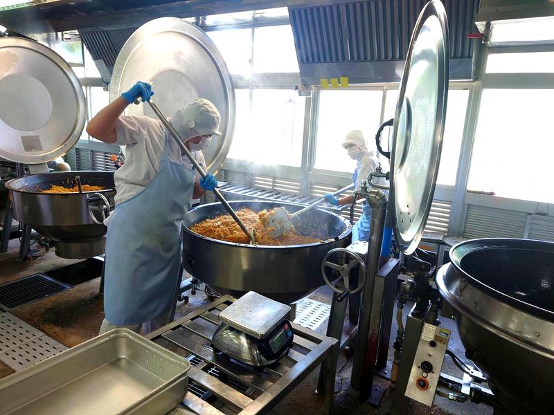 小学校での給食調理スタッフ